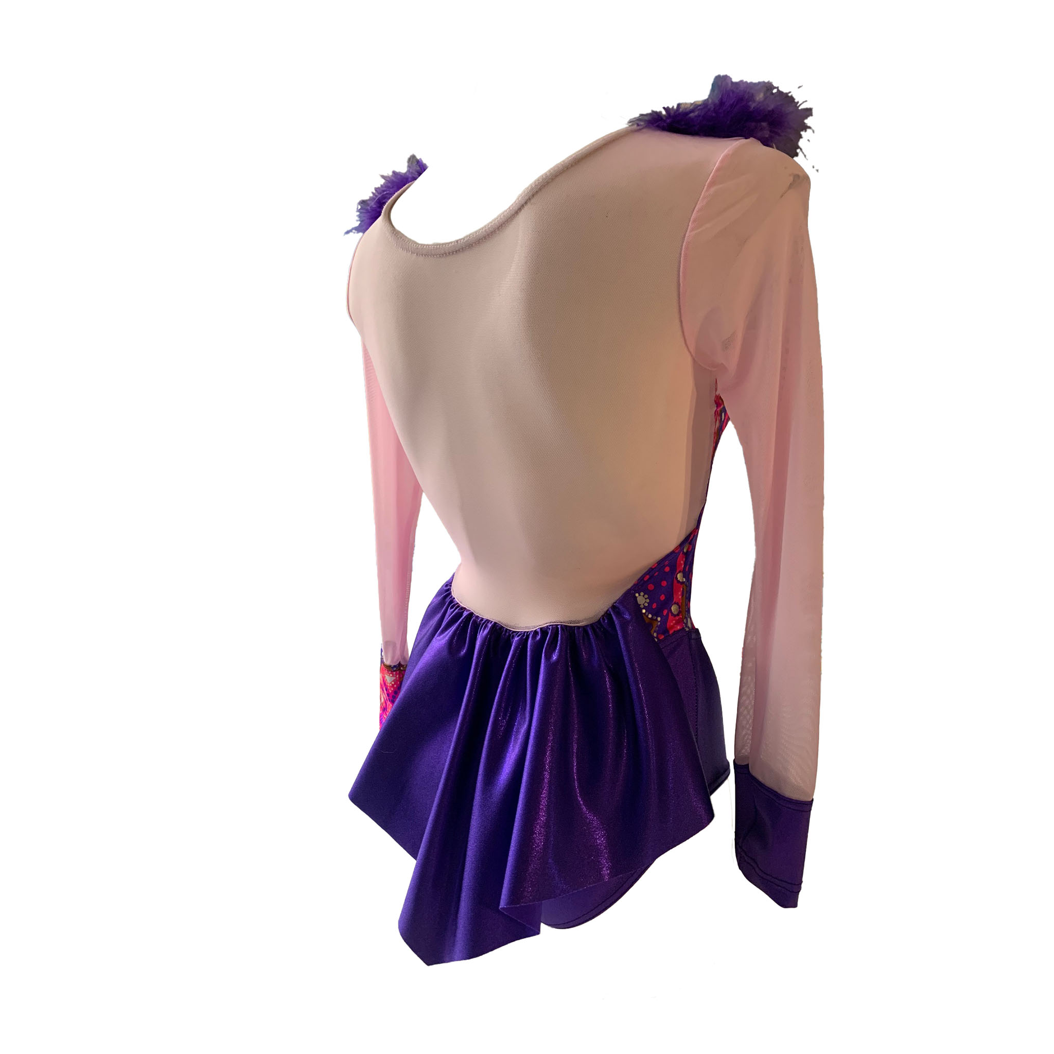 Κορμάκι λύκρα λαμέ από την luxury σειρά μας ιδανικό για επιδείξεις ρυθμικής και για αγωνιστικές κατηγορίες . Με υπέροχο ελαστικό εμπριμέ, λαμέ ύφασμα και ελαστική διαφάνεια ροζ στα μανίκια και στην πλάτη,ενσωματωμένη ουρά λαμέ μωβ στο πίσω μέρος και πομ πομ στους ώμους .Πολλή καλή εφαρμογή χάρις στο πατρόν του και την ελαστικότητά του ώστε να προσφέρει μια εντυπωσιακή εμφάνιση στις αθλήτριες που συμμετέχουν σε αγώνες και γυμναστικές επιδείξεις σε αξεπέραστη τιμή.Διατίθεται σε παιδικά καθώς και σε εφηβικά νούμερα και επίσης κατόπιν παραγγελίας σε όλα τα μεγέθη και σε άλλα χρώματα και υφάσματα.Ελληνικής κατασκευής και ραφής.